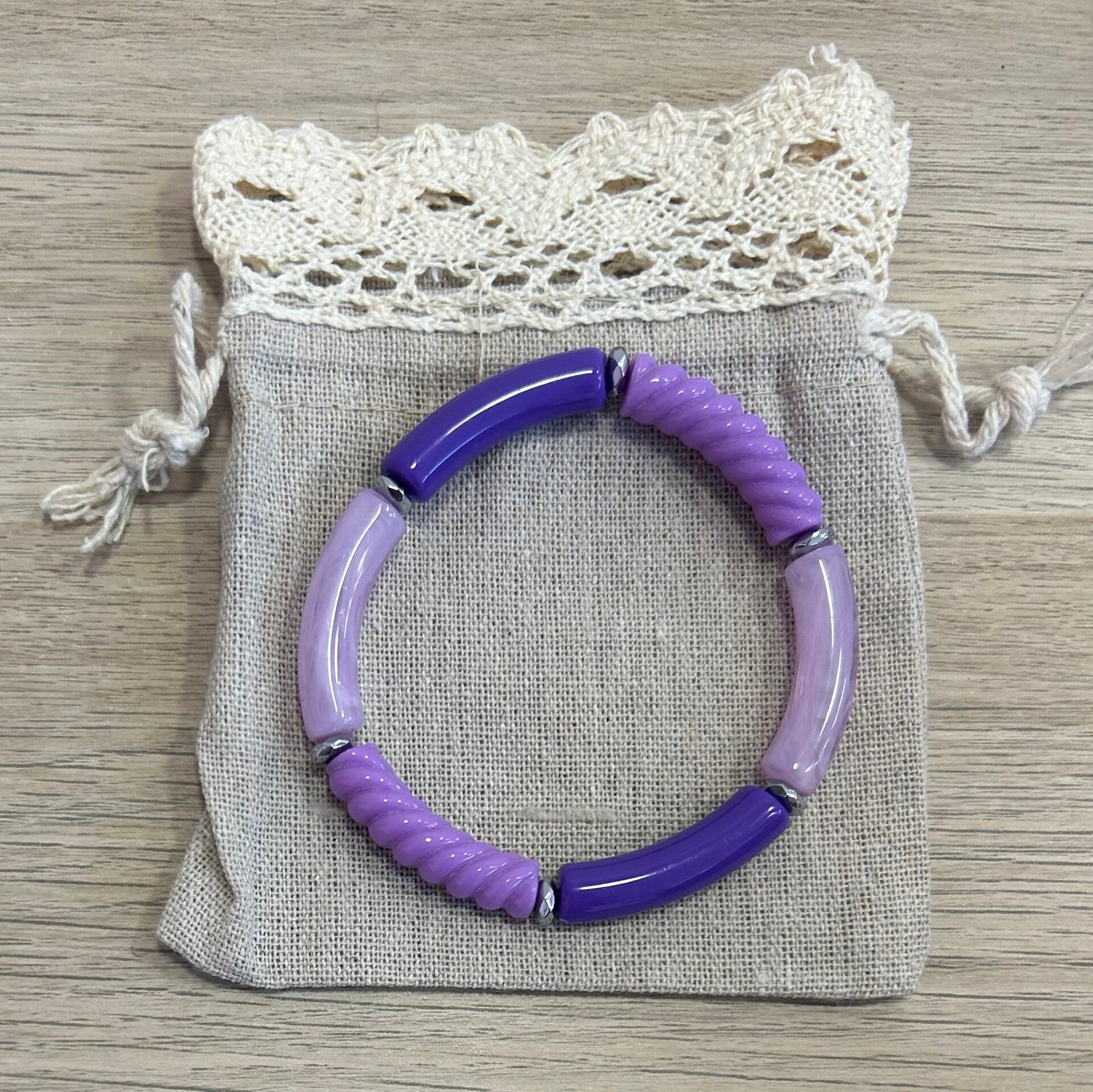 Bracelet élastique en perles acétates incurvées et hématites