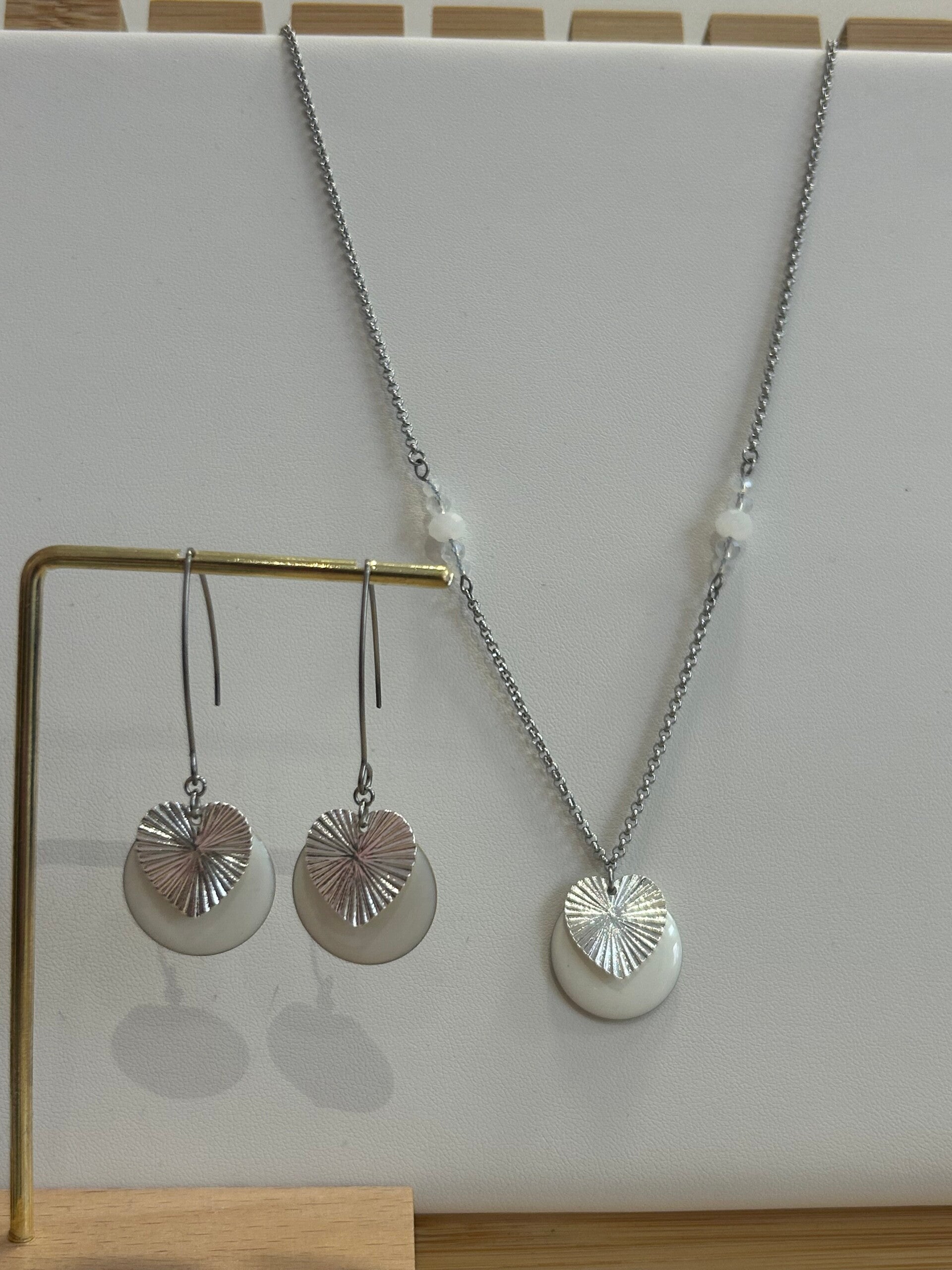 Boucles d'oreilles coeur argent et sequin émaillé blanc
